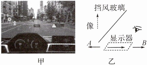 15. (2023·贵阳南明区期末)如图甲所示为汽车抬头显示器,显示器可以将车辆的车速、油耗、导航等信息通过前挡风玻璃投射在驾驶员前方,防止驾驶员低头观察仪表盘而分散注意力,确保驾驶安全。请回答: