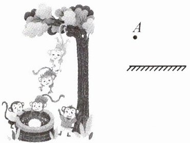 14. “猴子捞月”的故事同学们耳熟能详。如图所示,若猴子的眼睛用点A表示,空中的月亮用点B表示,请画出猴子看见水中月亮的光路图,保留必要的作图痕迹。
