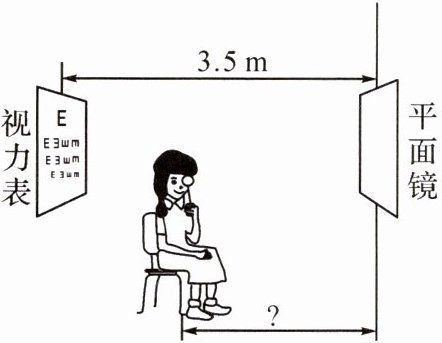 9. 视力检测时要求被测的人与视力表的距离为5m。如图所示,视力表与平面镜的距离是3.5m,为满足检测要求,人与平面镜的距离应为(
