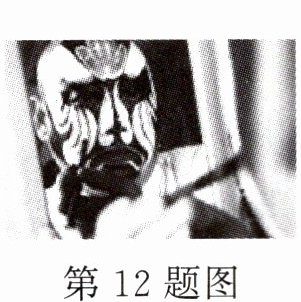 12. 脸谱是中国传统戏曲演员脸上的绘画,是用于舞台演出的化妆造型艺术。演员对着化妆镜画脸谱时,镜子中的像是