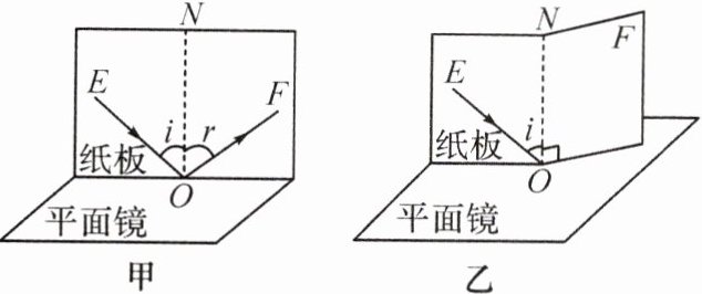 反射的缘故。(2)如图甲所示,让入射光沿EO方向射向镜面,在纸板NOF上可看到反射光OF,若将纸板NOF沿ON向后折,如图乙所示,此时在NOF面上
