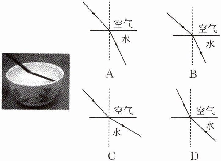 11. (2024·贵阳乌当区期末)如图所示,在水中的筷子看起来向上偏折,下列能正确解释此现象的光路图是(