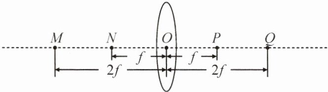 9. 要想利用焦距为 $ f $ 的凸透镜使小灯泡发出的光变成平行光,可以把小灯泡放在主光轴上的(