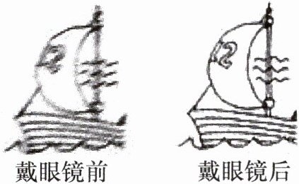 5. 如图是小明戴上眼镜前和戴上眼镜后观察到的远处帆船的情形,由此可以判断出小明视力存在的问题以及所戴的眼镜的镜片类型分别是(