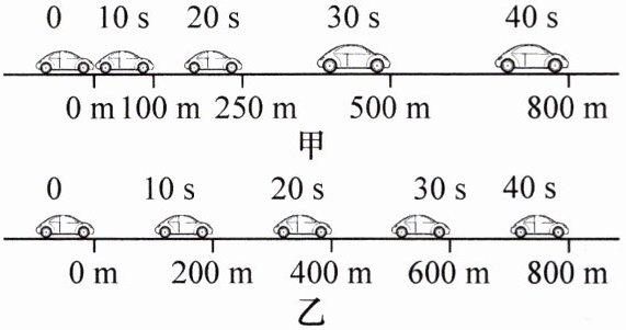 6. 如图记录了两辆汽车在平直公路上的运动情况,在这$800\ m$的运动过程中,甲、乙两车的平均速度$v_{甲}$