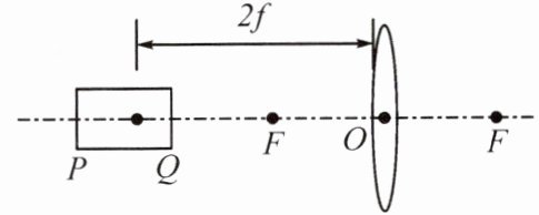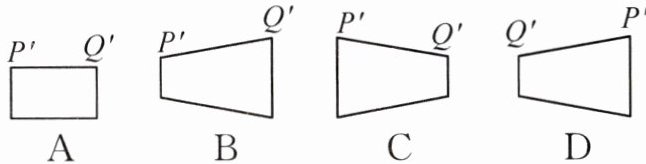 8. (2024·黔南州校级二模)如图所示,有一圆柱体$PQ$,放在凸透镜前图示的位置,它所成像$P'Q'$的形状应该是下列图中的($P'$点是$P$点的像,$Q'$点是$Q$点的像)(