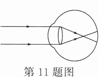 11. (2024·遵义期中)软质隐形眼镜是一种直接贴在眼睛角膜表面的超薄镜片,可随眼球的运动而运动。其中心厚度只有0.05mm。如图是某人观察物体时成像示意图,请判断该人所患的眼部疾病及配制的隐形眼镜的边缘厚度(
