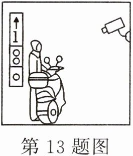 13. (2024·常州)《重庆市消防条例》规定:禁止携带电动自行车或其电池进入电梯轿厢。一旦有人违规操作,会被电梯内的摄像头拍摄成像并智能识别,电梯将停止运行并发出声、光警报。如图所示,某次发出警报时,摄像头凸透镜成像的像距为10.1mm,则凸透镜的焦距可能为(