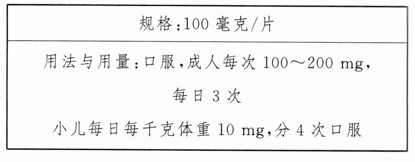 片;小明 4 岁,体重为 20 kg,他每次应该口服0.5