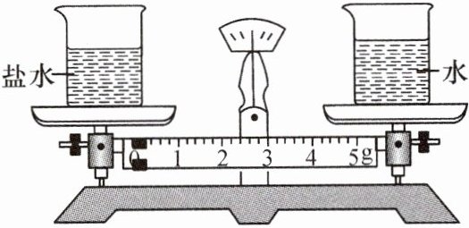 (2) 将上述装有盐水和水的烧杯分别放在天平的左盘和右盘,天平不平衡。