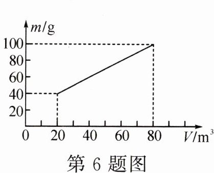 6. (多选)(2024·贵阳乌当区期末)小明想通过实验测量某种液体的密度,他首先用量筒测量了部分液体的体积V后倒入烧杯(量筒中无残留),再用天平称量出液体和烧杯的总质量m,多次重复上述操作后,他将得到的几组数据绘制成如图所示的m-V图像。下列说法正确的是 (