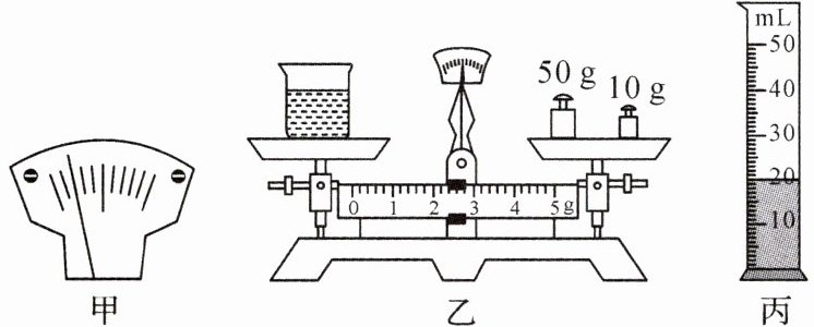 (2)天平调平衡后,将适量的蜂蜜倒入烧杯中,并用天平测量烧杯和蜂蜜的总质量,通过加减砝码一番操作,当小明将10 g砝码放入右盘后,横梁指针还是如图甲所示,接下来的操作应该是