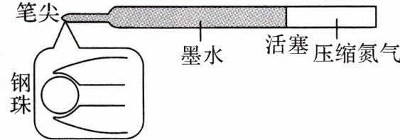 8. (2024·贵阳乌当区期末)在天宫空间站失重环境下,书写并非易事,用钢笔书写,墨水不会自动往下流,导致书写断断续续。图中所示的一款“太空圆珠笔”成功解决了这一问题。书写过程中笔芯内氮气的体积变大,密度