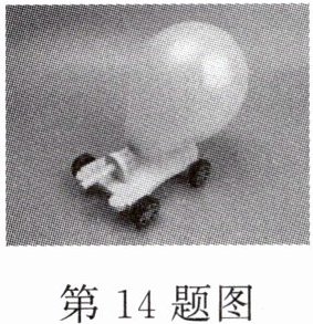 14. (2023·泰州) 小华利用饮料瓶、气球、瓶盖、吸管等制作了一个简易喷气小车,如图所示。拔掉吸管口的塞子,气球向左喷气,同时小车会向右运动,说明物体间力的作用是