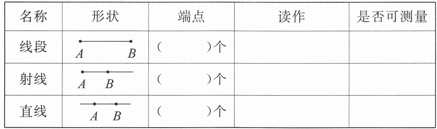 2 线段AB(或BA) 是;1 射线AB 否;0 直线AB(或BA) 否