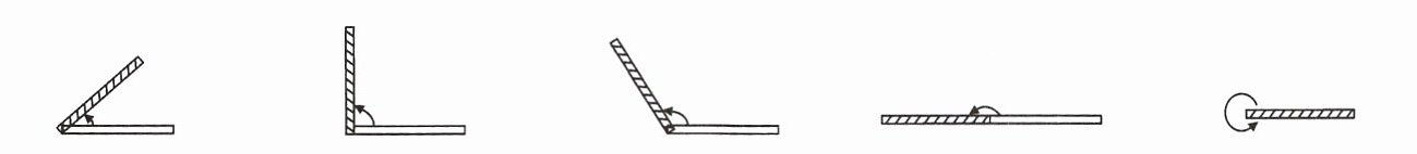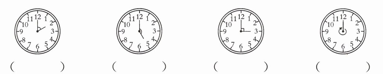 二、观察每个钟面,写出时针和分针所形成的角的名称。