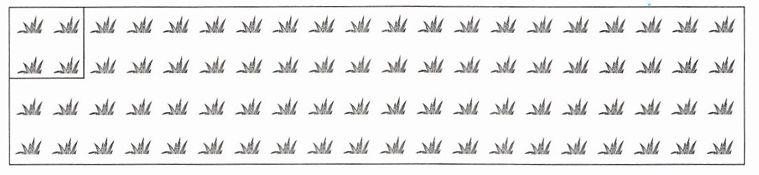 三、下面是一块长方形草地,图中的小方框代表1平方米,估一估,这块草地的面积大约是(