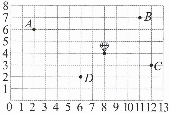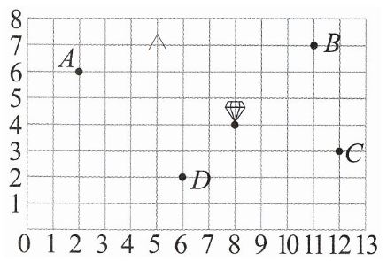 4. 存放宝石的盒子的位置是$(5,7)$,请你用$\triangle$在图中标出盒子所在的位置。