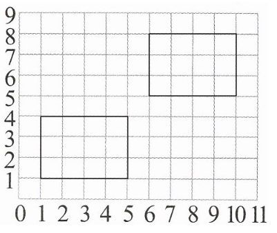 四、【思维拓展】在右图中顺次连接$(1,1)$,$(1,4)$,$(5,4)$,$(5,1)$,$(1,1)$这些点,可以得到一个( )形。请先画出把这个图形先向上平移4格,再向右平移5格后的图形,再用数对表示出平移后的图形各个顶点的位置。
