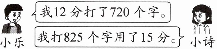 小乐:720÷12=60(个) 小诗:825÷15=55(个) 60个>55个 小乐打字快一些。