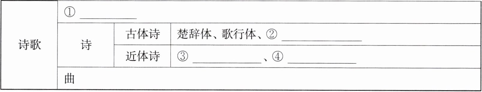 | | 诗 | 古体诗 | 楚辞体、歌行体、②