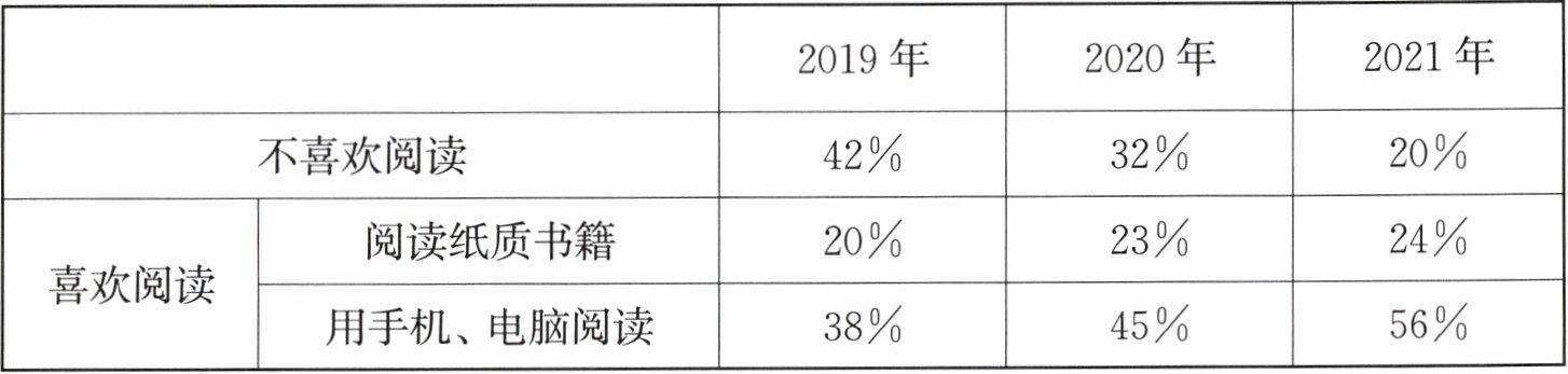 | 不喜欢阅读 | 42% | 32% | 20% |