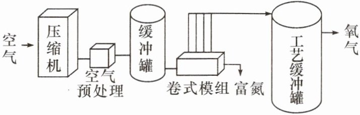 9. 工业制氧气有四种方法,分别是分离液态空气法、膜分离技术、分子筛制氧法(吸附法)和电解制氧法。如图是采用膜分离技术制取氧气的简易流程: