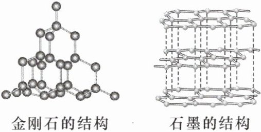 5. 如图为金刚石和石墨的结构模型图,图中小球代表碳原子。下列说法正确的是(