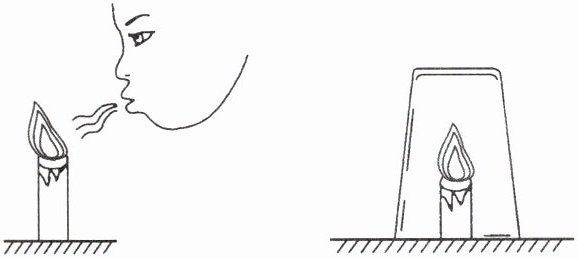 6. 小文在学习“燃烧与灭火”的内容时,做了以下实验,用两种不同方法熄灭蜡烛火焰。