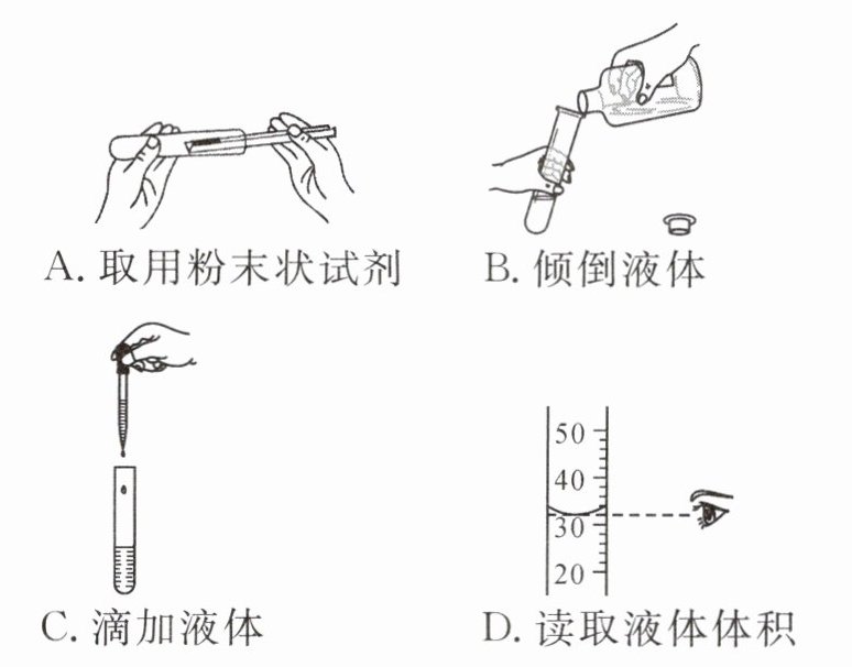 D.装入粉末状试剂时,先倾斜试管,用药匙将药品送入试管底部后,再直立试管