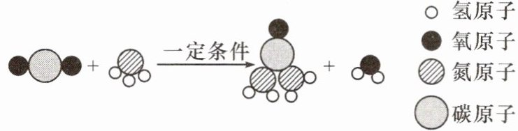 8. (2024·长春)1828年维勒通过加热氰酸铵得到了尿素[化学式为$CO(NH_{2})_{2}$]。尿素是第一种在生物体外合成的有机物,目前工艺有很大改进。某合成尿素的反应微观示意图如图。