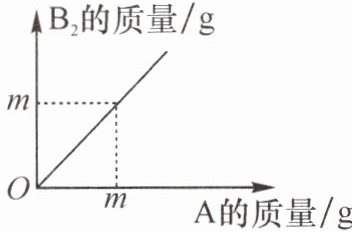 7. 在化学反应 A + B₂$\xlongequal{}$AB₂ 中,A 与 B₂ 反应的质量关系如图所示,现将 8 g A 和 5 g B₂ 充分反应,则生成 AB₂ 的质量是 (