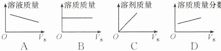 12. 某浓溶液加水稀释后变成稀溶液(稀释过程中溶液温度不变),下列能正确表示这一变化的是(V水表示加入水的体积)(