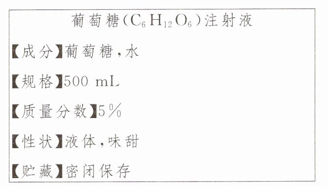 15. (2023·泰安)某葡萄糖(C₆H₁₂O₆)注射液的标签如图所示。