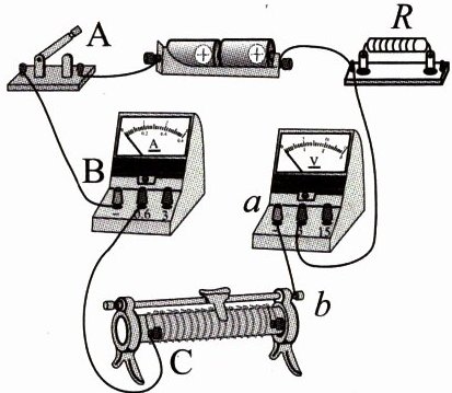 端。(4)试触时发现电压表和电流表的指针均不偏转。为查找故障,闭合开关,保持导线ab的a端不动,将b端依次接A、B和C接线柱,电压表的指针均偏转,电流表指针均不偏转。若电路中只有一处故障,则发生的故障是