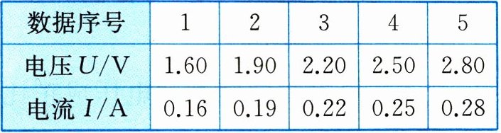 |电压$U/V$|1.60|1.90|2.20|2.50|2.80|