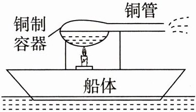 3. 在制作简易热机模型活动中,小明制作了如图所示的简易“蒸汽船”模型。将盛有一定量水的铜制容器安装在“船体”上,用蜡烛对铜制容器底部加热,一段时间后铜管会向右喷气,“蒸汽船”就向左行驶。
