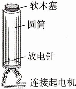 2. 小辉在爸爸指导下制作的简易汽油机模型如图所示,将适量的汽油喷入圆筒内,用软木塞塞住筒口,当放电针释放电火花时,软木塞被冲出。下列说法正确的是(