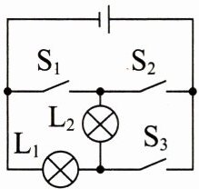 ;断开$S_1,$闭合$S_2、$$S_3$时,L₁发光而L₂不发光