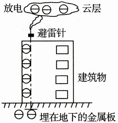 6. (广州中考)如图所示,带负电的云层靠近建筑物上的避雷针时,向避雷针剧烈放电形成雷电。下列说法正确的是(