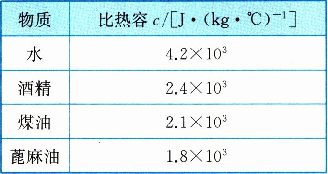 |物质|比热容$c/[J·(kg·℃)^{-1}]$|