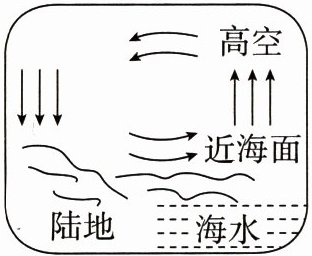7. 炎炎夏日,小布来到一个美丽的海滨城市。他发现,这里的风常常从陆地吹向海面。他利用学过的物理知识进行分析,并画出陆地和海面之间空气流动情况的示意图,这种风通常(