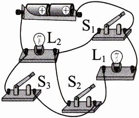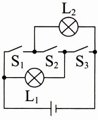 3. (自贡中考)在如图所示的电路图中,闭合开关$S_1、$$S_3,$断开开关$S_2,$则小灯泡$L_1、$$L_2$是
