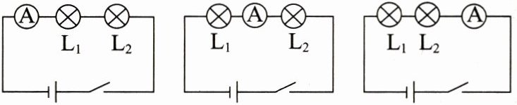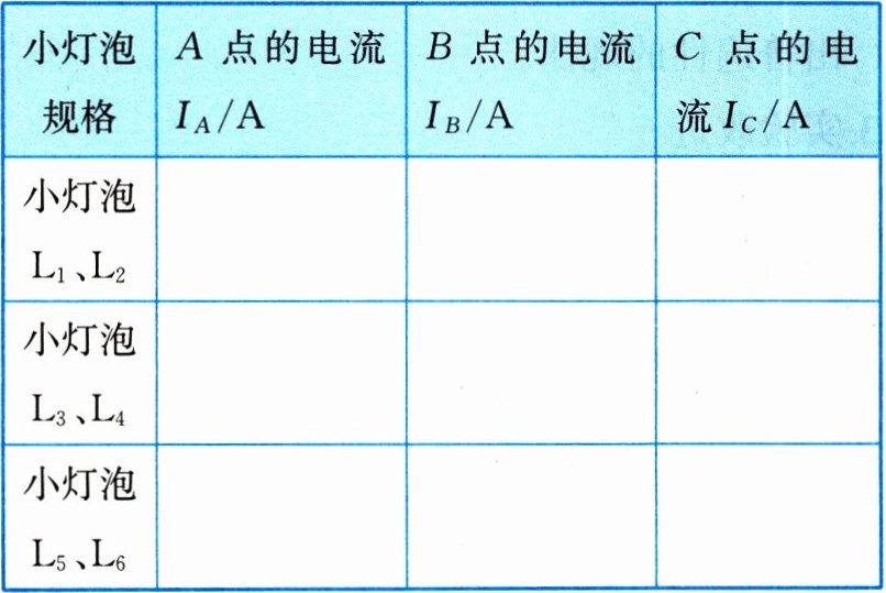 状态。(2)把电流表分别接入$A$、$B$、$C$三点,如图所示,检查电路无误后闭合开关,读出电流表的示数,记录在表格中。