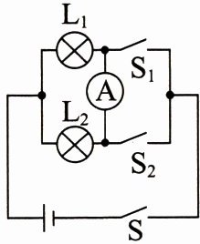 3. 在探究并联电路的电流特点时,根据如图所示的电路图连接好电路,闭合开关$S$、$S_{1}$,断开$S_{2}$,可以测出通过灯