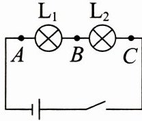 1. 在探究串联电路中的电流规律实验中,某同学用电流表分别测出图中$A$、$B$、$C$三处的电流大小,并初步得到它们之间关系的结论。为了进一步探究它们之间的关系,下一步他的操作是 (