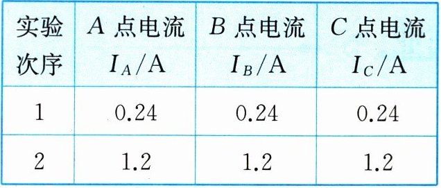 | 实验次序 | $A点电流I_{A}/A$ | $B点电流I_{B}/A$ | $C点电流I_{C}/A$ |