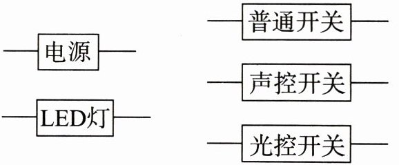 (4)小明想给爷爷奶奶的卧室安装一个床角 LED 自动小夜灯,他想要的效果是:①白天小夜灯绝对不亮;②夜晚有声音时灯亮。有以下可供选择的器材,请你帮他选择合适的器材连成电路。