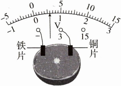 (选填“铁片”或“铜片”)。(3)为获得更高的电压,可以将多个水果电池