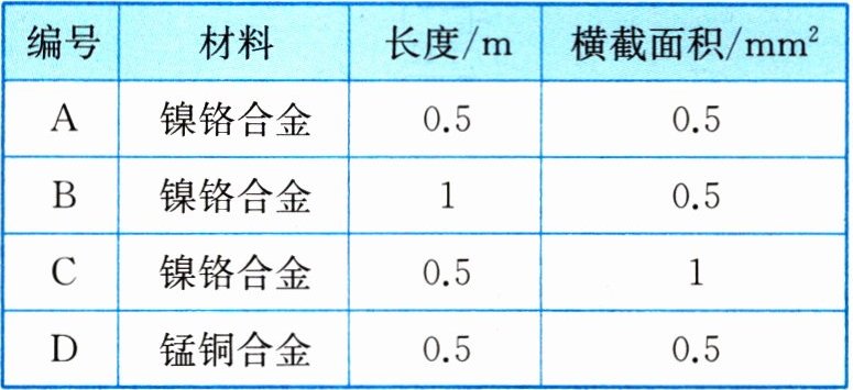 4. 探究影响电阻大小因素的实验装置如图所示,表中是所用电阻丝的材料及规格。